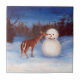 De una pintura de acrílico original de Brenda Thour de un ciervo curioso sobre ése la zanahoria que huele deliciosa de los snowmans sospecha. Copyright de Brenda Thour 2003.