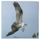 Una fotografía de Osprey que vuela, exhibida en una teja de la cocina o del cuarto de baño. ----- La fotografía es con derechos de autor por el fotógrafo, Christina Spiegeland.