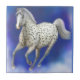 Pintura original de la bella arte de un caballo galopante del appaloosaa del leopardo del artista Carolyn McFann del estudio de ronroneo de dos gatos en una baldosa cerámica de la calidad para los amantes del caballo.