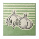 Los italianos aman el ajo y características del este grandes diseño la palabra italiana para el ajo, AGLIO. Bulbos regordetes del ajo en un fondo rayado. Final apenado. Gran regalo para cualquier cocinero, amante del ajo o aficionado italiano de la comida. Haga que un regalo fija o recoge los 6 de nuestros diseños coordinados del italiano para el queso, los tomates, ajo, las cebollas, aceite y vinagre y vino. ¡Original de PinkInkArt!