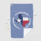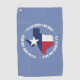 Muestre su orgullo de Tejas con esta toalla del golf que se asemeje a la bandera del estado de Tejas. Tiene las palabras "Tejas llevado y crió" alrededor de la silueta de Tejas. Fije contra un fondo azul (el color de fondo se puede cambiar). ¡Hace un gran regalo para un natural de Tejas! El diseño tiene un final apenado.
