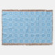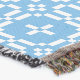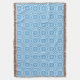 Una manta atractiva del tiro, con un modelo de los adornos tradicionales de la tapicería Galés en blanco en un fondo brillante del azul de cielo.