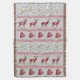 Una manta de lanzamiento inspirada en Europa, de color gris claro, con hileras de flores de elweiss blancas, ciervo rojo, corazones rojos y bandas de cuadros rojos y blancos. Personalizar para agregar el texto que desee. Ideal para las vacaciones y todo el año.