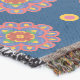Una manta de bonito, con un patrón colorido de rangolis, flores rosadas y puntos de polka en un fondo azul profundo que puede cambiar si lo desea. (Verde azulado o rosa frambuesa son grandes alternativas!) Parte de la colección "Rangoli" de Posh & Painterly.