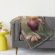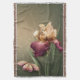 Manta decorativa con estampado floral elegante de una hermosa flor de iris color burdeos y crema junto a una mariposa, sobre un fondo verde apagado. Puedes personalizar esta pieza única con el texto que quieras o dejarla tal como está para un regalo encantador.