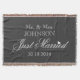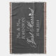 Sr. y la señora con clase acaban de casar la manta del tiro para el recién casado. La idea romántica del regalo de boda para nuevamente se casa/el par casado apenas del novio y de la novia/del marido y de la esposa. Incluya la fecha del boda. Tipografía elegante de la escritura. Decoración casera elegante.