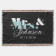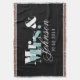 Sr. y la señora lindos lanzan la manta para los pares del recién casado. La idea romántica del regalo de boda para nuevamente se casa/el par casado apenas del novio y de la novia/del marido y de la esposa. Incluya la fecha del boda. Tipografía elegante de la escritura. Colores blancos y negros de las azules turquesas.