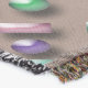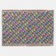 Los botones 3D, en rectángulos y círculos, se muestran en múltiples colores pastel. Diseño replicado varias veces en diagonal, a través de la manta.