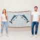 No muchos peces son más increíblemente hermosos que el marlin azul — y no muchos peces son más grandes. El marlin azul es el más grande de los marlins del Atlántico y, en serio, uno de los peces más grandes del mundo. Como con algunas especies, la hembra es a menudo un poco más grande que el macho. Las mujeres pueden crecer hasta 4 metros de largo y pesar más de 1900 libras, aunque el promedio es de unos 11 pies de largo por 300 libras. Un azul profundo en la parte superior y un blanco plateado debajo, con una aleta dorsal pronunciada y una mandíbula superior larga, letal y en forma de lanza (a la que algunos se refieren como una cuenta), los marlins azules son uno de los peces más fácilmente identificables y reconocibles del mundo. Marlins es conocido por su increíble resistencia en una lucha cuando están enganchados, lo que los convierte en uno de los favoritos de los pescadores de grandes juegos. Aunque también se puede decir de prácticamente cualquier pez super grande, no puedo imaginar que haya mucho más emotivo para el ávido pescador que enganchar a uno de estos gigantes y verlo romper el agua en la lucha. Este diseño rinde homenaje a este majestuoso pez más que a los pescadores que lo buscan. Para esta maravillosa manta de tiro, dos marlins azules se enfrentan unos a otros, saltando de un mar de manta de colores, lo que hace de esto una excelente adición a su pabellón de pesca o decoración de casa de playa.