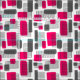 Un diseño original de estilo retro moderno, con rectángulos grises oscuros de líneas o rayas con parches de un gris más claro con un color. Este patrón es un gráfico vectorial por lo que puede hacerse fácilmente mayor o menor