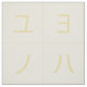 Esta tela tiene patrones de costura para bloques de niños japoneses con caracteres katakana. Se puede usar solo o con las piezas laterales amarillas del bloque Baby Komon de 3.75". También puede utilizar los caracteres como cuadrados de tejido o aplicaciones para deletrear palabras y nombres en japonés.