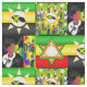 Tela con imágenes culturales jamaicanas.