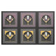He creado 6 diseños de fans icónicos en un patio de algodón. Muy art déco en 2 colores, morado y amarillo. La imagen no hace justicia a los colores. Estos paneles son fabulosos para coser sus propios cojines o incluso añadir una colcha. Cada panel mide 40 cm.