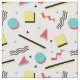 La tela de la diversión que ofrecía un 90s fabuloso inspiró el modelo con los círculos, los triángulos, los cuadrados y otras formas en rojo, amarillo coralinos, turquesa, y negro.