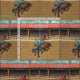 Tela a pelo del montar a caballo del Bronc del vaquero del rodeo de Cheyenne. Arena del rodeo con el texto de Cheyenne en el tejado y un jinete a pelo del bronc. Observe por favor que este diseño tiene una mirada texturizada (véase el cierre para arriba) que éste es parte de una colección con diversos acontecimientos del rodeo con este mismo fondo de la arena del rodeo.