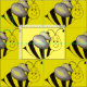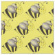 El tejido presenta abejorros negros y amarillos en un fondo amarillo.
