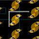 Un divertido diseño de arte abstracto de los ojos de un búho en la oscuridad con la cabeza retorcida de los lados.