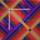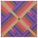 Este diseño geométrico moderno de colores brillantes está decorado con un diseño de rayas abstractas 3D contemporáneo en un espectro de naranjas, violetas, amarillas, rojas, verdes, violetas y negras que se asemeja a un bonito arco iris.