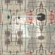 Este tejido abstracto moderno de mediados del siglo XX es una réplica de una tela vintage de los años 50. El fondo es crudo con líneas en negro y oro. La tela también tiene formas de arte moderno gris y rosa. ¡Es una explosión del pasado! Este es el diseño perfecto para todo aquel que ame los objetos con un toque retro.