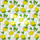 Tejidos de cítricos suaves y bonitos decorados con limones en tonos vivos amarillos y verdes pintados en acuarela.