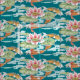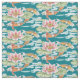 Tela Acuarela Verde azulada Tropical Koi & Lotus Fish P