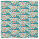 Un fondo de color verde azulado profundo resalta mi acuarela koi pez y loto rosado - lirio de agua en un estanque de peces estilizado. El agua parece brillar en bandas de azules y verdes. Hermosa tela tropical u oriental para la artesanía, la vestimenta o la decoración. Colores elegantes y a la moda que contrastan con el verde azulado, el naranja y el rosa. Obra de arte y diseño original de Tuzi Williams.