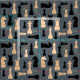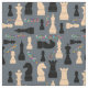Imágenes de silueta de ajedrez de color negro y beige. Palabras coloridas y decorativas: ajedrez, cheque, jaque mate, juego, movimiento, campeón, ganador, pensamiento. Puede cambiar el color del fondo. Tejidos de ajedrez divertidos y elegantes.