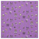 Los patrones incluyen personajes de Alicia en el País de las Maravillas y elementos en el fondo del arlequín morado.