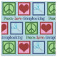 Amor Scrapbooking de la paz. Un regalo hermoso del scrapbooker con un signo de la paz bonito, un corazón, y un par de tijeras lindo perfecto para diseñar y hacer un libro de recuerdos a mano de fotos y de recuerdos.