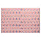 Esta tela temática náutica ofrece una repetición de las anclas de los azules marinos en un coral y un fondo rayado blanco.