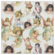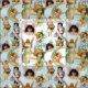 Hermosas imágenes de ángel vintage dispuestas en un collage único sobre un fondo de diseño de nube de color blanco a azul y verde azulado. Diseño por diseños de Holiday Hearts (derechos reservados).