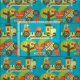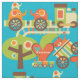 ¡La tela animal colorida del tren que ofrece un tema del tren para los niños que aman animales y los trenes, tiene un fondo del azul de cielo con una locomotora y los coches de tren con los elefantes, los tigres, y las jirafas, los corazones anaranjados brillantes, los árboles, y las pistas coloridas del tren!