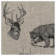 ¡Este artículo se diseña con una variedad de animales del bosque! Hay un oso, alces, ciervos, y patos.