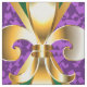 joyas, fondo del Mardi Gras de rhombus violeta y verde, lirios dorados decorados.