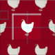 Tejidos inspirados en una granja divertida, con un patrón de gallo blanco, sobre un rico fondo rojo. Gran idea para la elaboración o coser.
