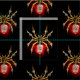 Araña mecánica, de vapor punk con oro, engranajes de latón y una lámpara de vidrio roja sobre un fondo negro. Estilo Steampunk.