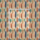 Esta tela tiene un diseño moderno de mediados de siglo de largos ovales en melocotón, verde, azul, verde azulado y marrón claro con líneas negras con círculos en los extremos.