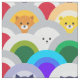 Arcoiris gato, ola japonesa, tela hecha a mano.