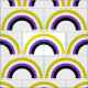 Los colores no binarios de amarillo, blanco, púrpura y negro crean un fresco tejido de género arcoiris. Ellos se enorgullecen de un amigo no binario en la comunidad gay de género que es fluido de género.