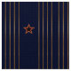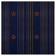 Este tejido presenta un original estilo Art Deco patriótico que consiste en 4 juegos de rayas verticales de oro de doble estilo militar alternadas con una estrella de 5 pt roja con bordes dorados, todo ello sobre un fondo de azul marino oscuro y rico. Perfecto para cualquier oficina, vestíbulo, biblioteca, cueva hombre, etc.