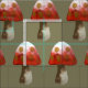 Diseño original de setas color rojo vivo a mano. Diseño de champiñones fantasmagórico.