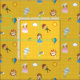 Los patrones incluyen Dorothy, Toto, Tin Man, Scarecrow, Cowardly Lion, Glinda la Buena Bruja, arcoiris, nube, sol, globo y paraguas sobre fondo de ladrillo amarillo.