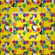 Ilustraciones de estilo realista de aussies y globos fiestas de colores brillantes se sitúan en un fondo amarillo brillante. ¡Este patrón ayudará a hacer que el perro de cumpleaños sea genial!
