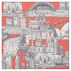 Toile de Jouy australiana, originalmente dibujada a tinta. Incluye la Casa de la Ópera del puerto de Sydney y Luna Park, Templo de Perth, horizonte de Melbourne, Chinatown de Adelaida, Museo Marítimo de Townsville, faro de Wollongong. Arrecife del corazón, playa Bondi.