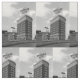La tela elegante ofrece una repetición del ladrillo de una fotografía blanco y negro de una torre semicilíndrica. La muestra auto occidental encima del edificio es cercada por una flecha. Puesto que la muestra no es paralela al lado plano del edificio del ladrillo, dibuja la atención al diseño curvado del edificio.