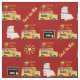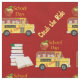 Feliz grupo de niños osos de peluche volviendo a la escuela en un pequeño autobús escolar amarillo. El texto del bus dice que la escuela es Guay, otra tipografía dice "Atrapar el viaje" y Días escolares. Sunshine, manzanas y acentos de pizarra. Nombre del personalizar en las dos áreas de pizarra con el nombre de su hijo. O borra el texto si desea esa área sin. Fondo rojo rico.