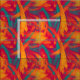 El original diseño abstracto "Pájaro del paraíso tropical" presenta colores amarillos, naranjas y azules en esta tela cerca del patio.