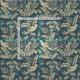 Un bosque de hojas, flores y pájaros en taupe con un fondo azul francés. Se puede cambiar el tamaño de todos los tejidos y cambiar el color de fondo contactando al artista.