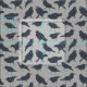 Esta tela estampada es perfecta para los amantes de las aves. Presenta ilustraciones de cuervos de estilo realista en gris de carbón oscuro contra un fondo gris claro moteado.