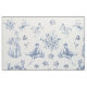 Patrón azul vintage de una escena pastoral francesa con una dama sosteniendo una canasta, un campesino y un grupo de ovejas con acentos florales.